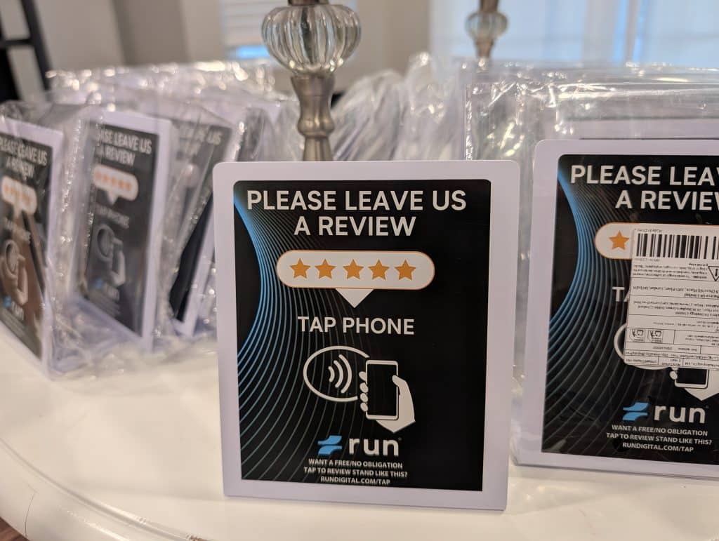Simply tap the card with your smartphone, and a link will pop up on the screen. Click the link to leave a review instantly—no app downloads or typing required!